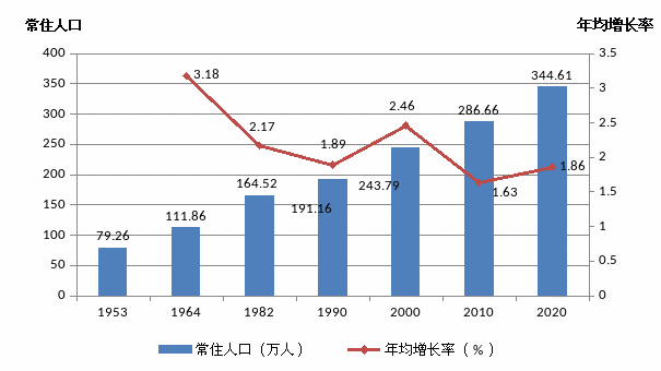 全市常住人口与2010年第六次全国人口普查的2866615人相比,增加579485人,增长20.21%,年平均增长率为1.86%。