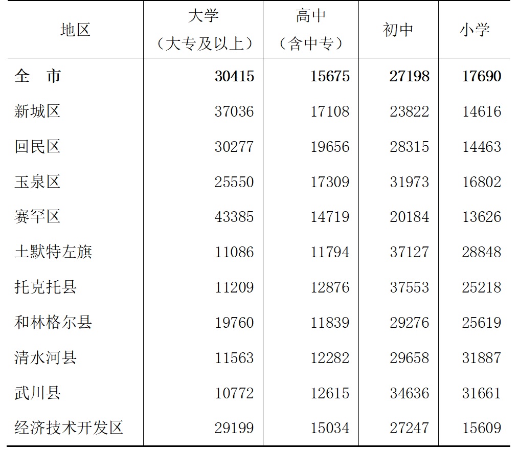 根据第七次全国人口普查结果,现将2020年11月1日零时我市10个市辖区、旗县、开发区(以下简称旗县区)的常住人口受教育基本情况公布如下: