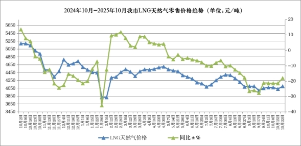 呼和浩特市价格认证监测中心对市场监测数据显示,本周我市LNG天然气零售价格为4098元/吨,比上周上涨70元/吨,涨幅1.74%,同比下降18.14%。