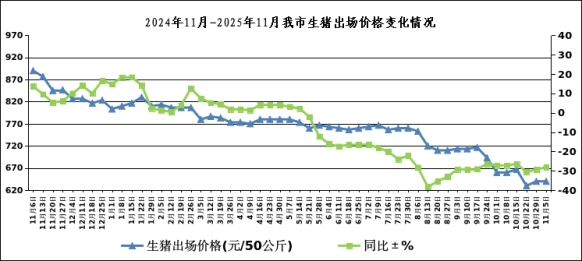 本周我市生猪出场价格为640.00元/50公斤(6.40元/斤),与上周持平,同比下降28.09%,猪粮比5.49:1。