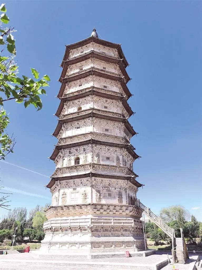 各场馆的专业讲解员向大家介绍了场馆特色及文物历史。在丰州故城博物馆,讲解员介绍了白塔,也就是万部华严经塔的建造年代、结构特点,以及砖雕造像等细节,让游客更深入地了解其高超的建筑技艺。