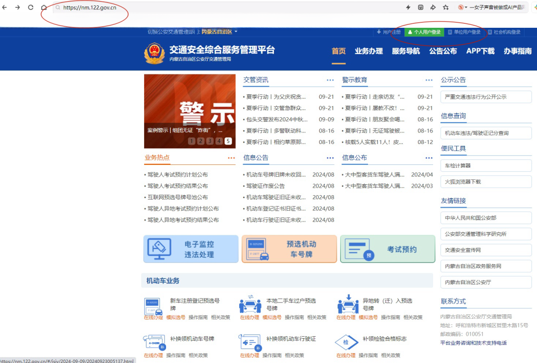 一、互联网登录“nm.122.gov.cn”,在右上角选择“单位登录”。