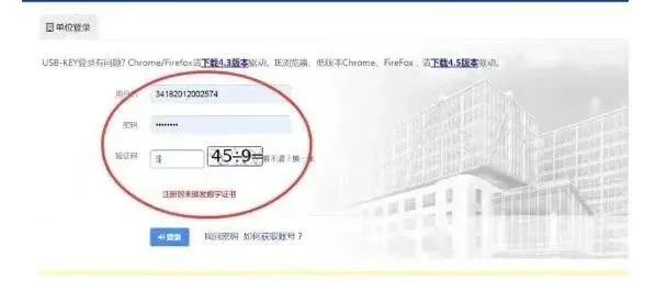 二、输入“用户名、密码、验证码”。无数字证书请勾选“注册时未颁发数字证书”。