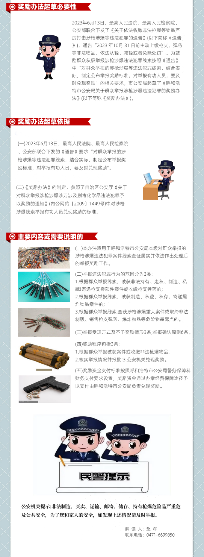 一图读懂:《呼和浩特市公安局关于群众举报涉枪涉爆违法犯罪的奖励办法》
