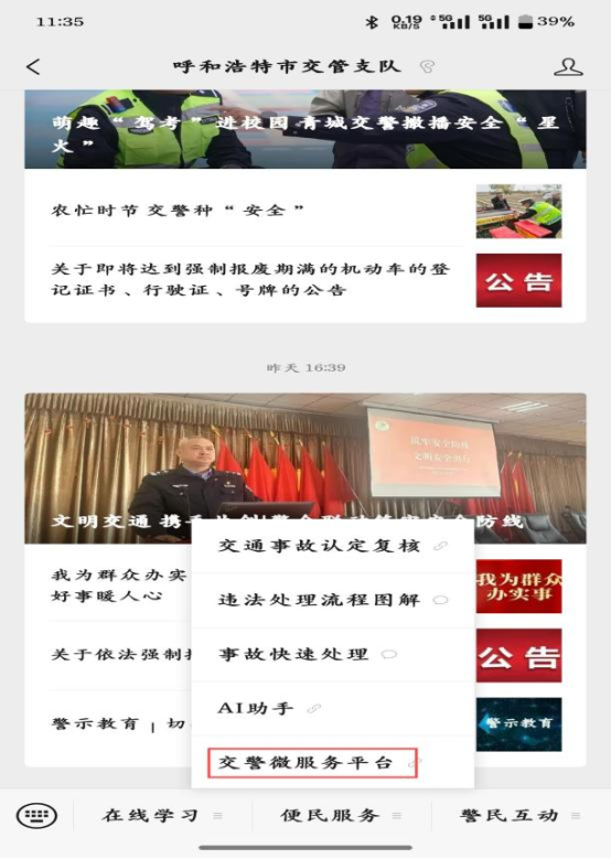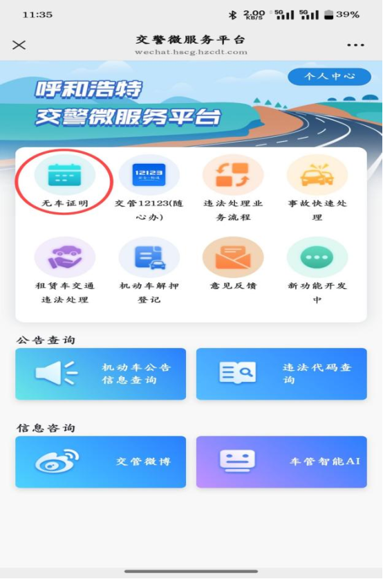 此外,除“无车证明”外,呼和浩特市交管支队公众号还提供违法处理业务流程、事故快速处理、租赁车交通违法处理、机动车解押登记、意见反馈、机动车公告信息查询、违法代码查询等多项服务功能。