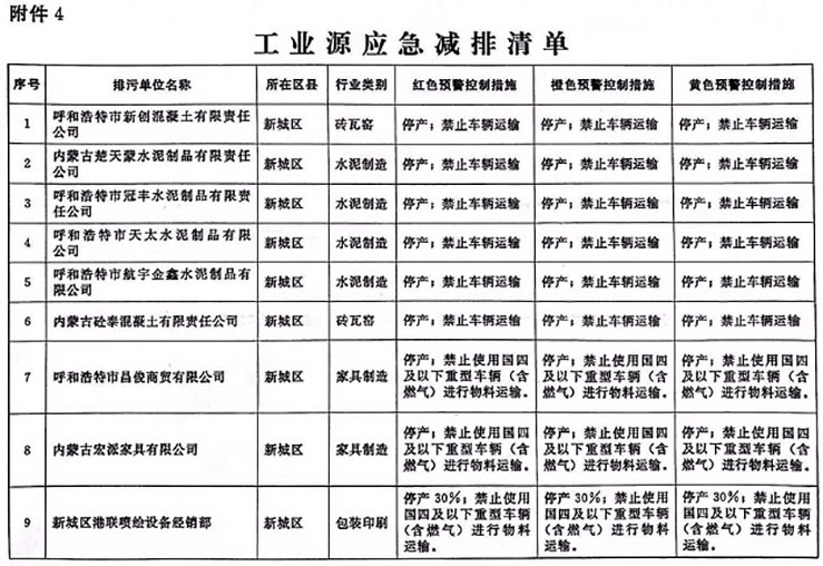 呼和浩特市重污染天气应急预案(2019年修订版)