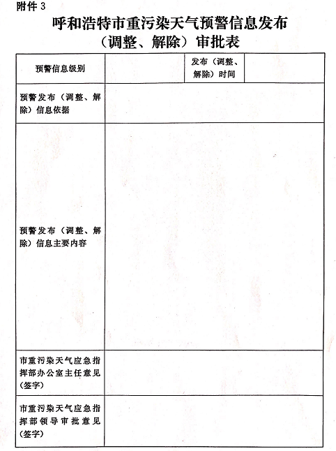 3.呼和浩特市重污染天气预警信息发布(调整、解除)审批表