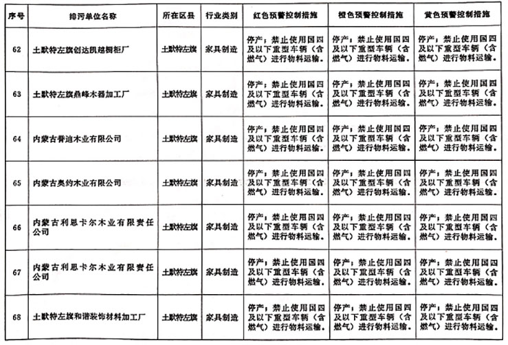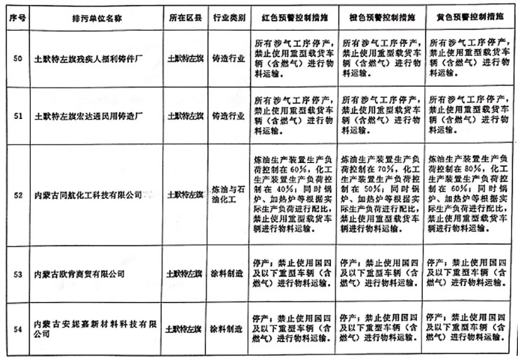 (1)按照属地管理的原则,各旗县区政府、经济技术开发区管委会督导纳入重污染天气黄色预警应急减排清单的相关企业,实施停产、限产、提高治理设施运行效率等重污染天气Ⅲ级应急响应减排措施。
