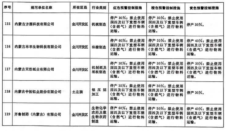 (1)按照属地管理的原则,各旗县区政府、经济技术开发区管委会督导纳入重污染天气黄色预警应急减排清单的相关企业,实施停产、限产、提高治理设施运行效率等重污染天气Ⅱ级应急响应减排措施。