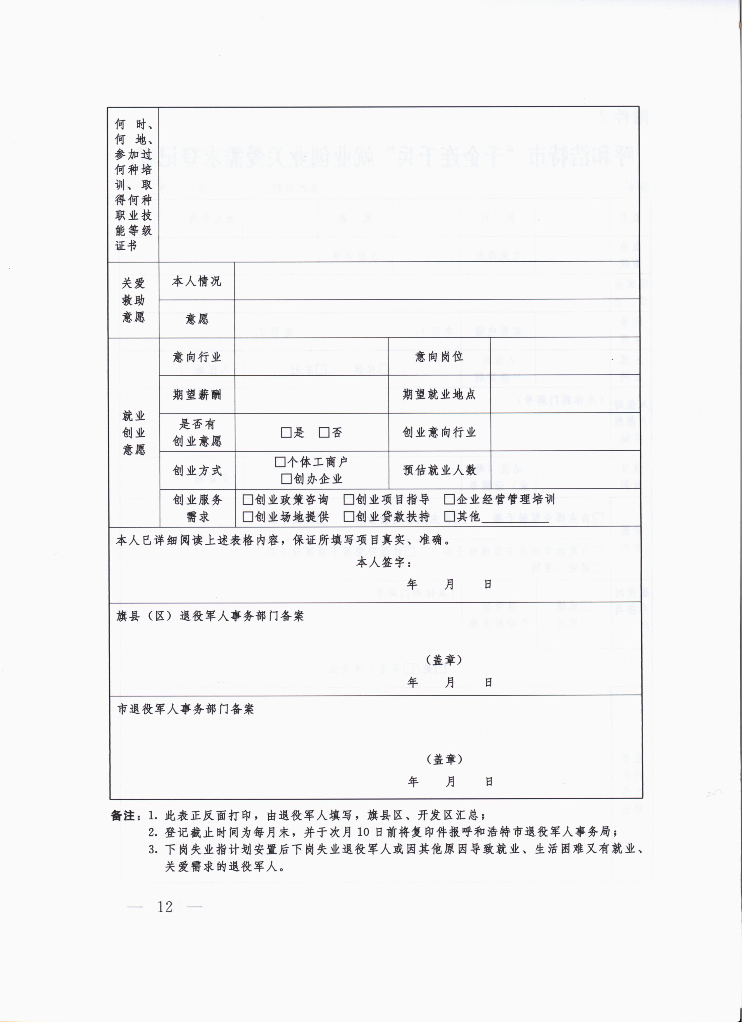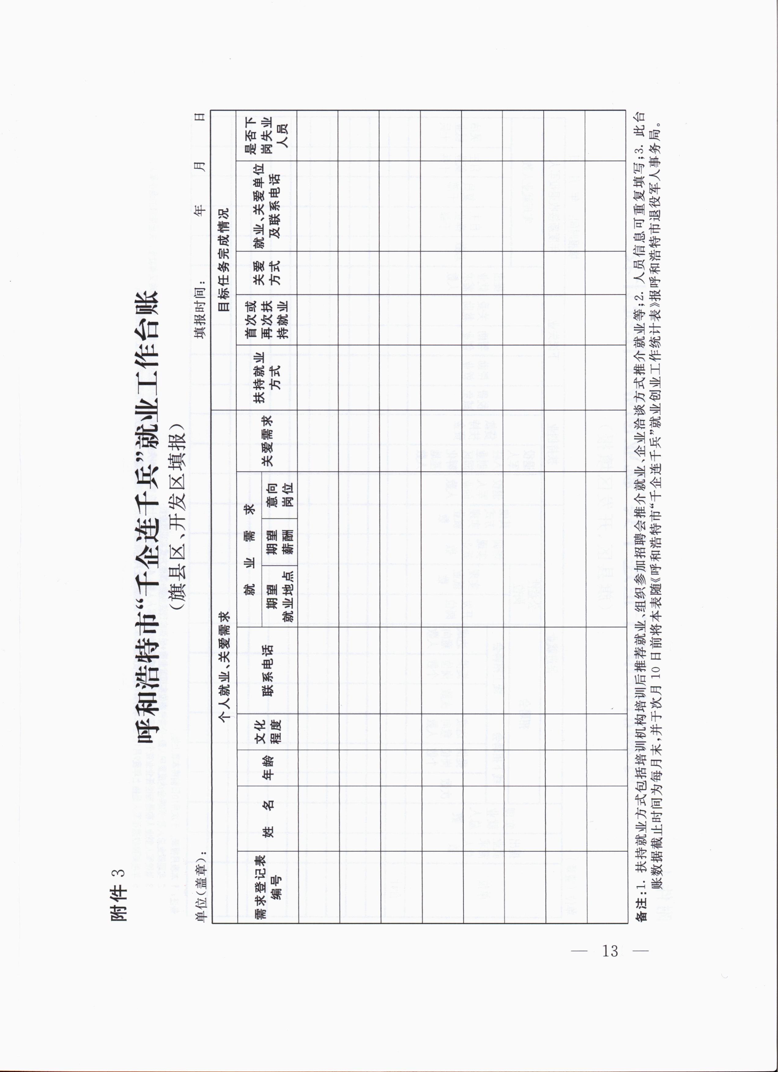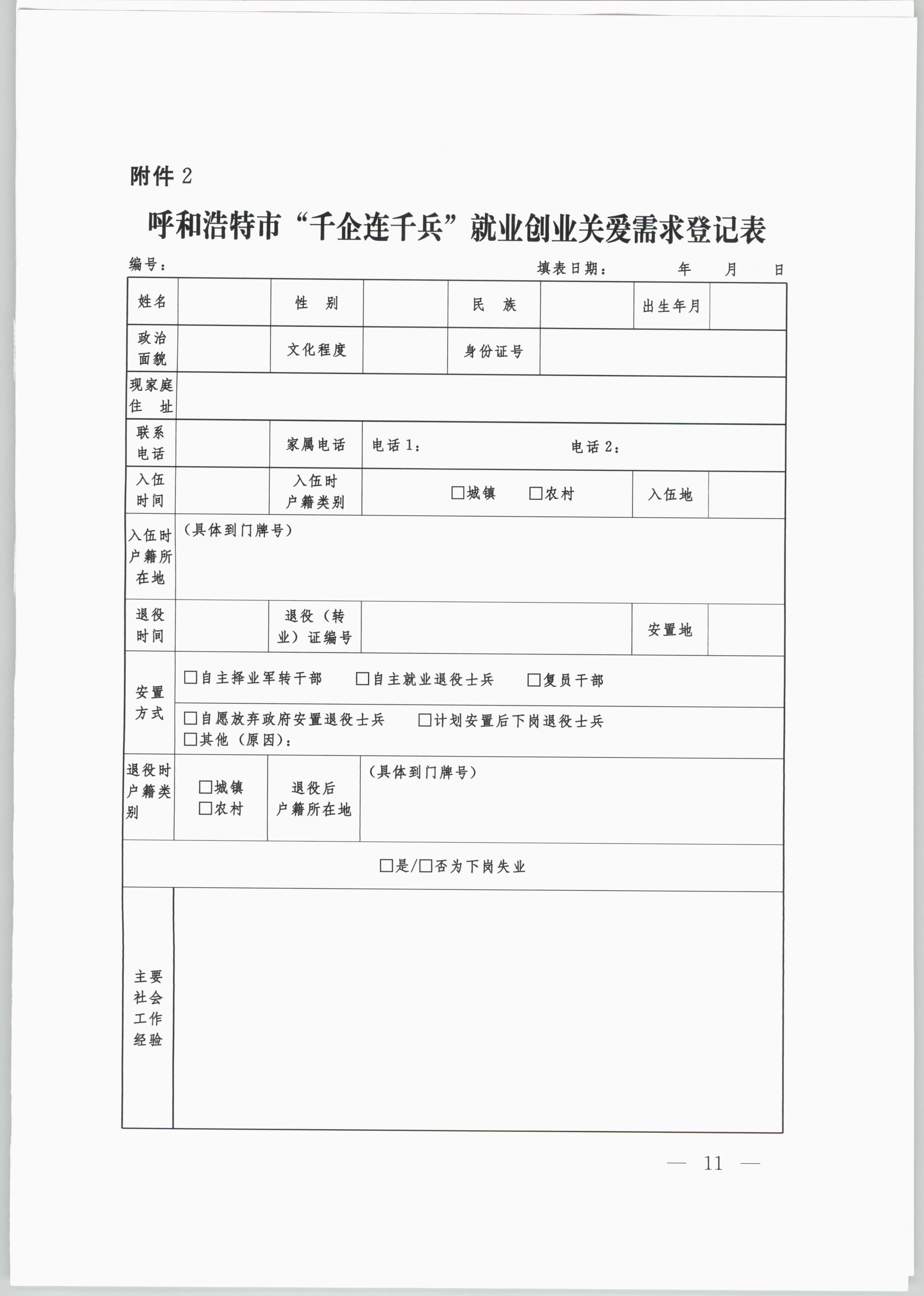 2.呼和浩特市“千企连千兵”就业创业关爱需求登记表