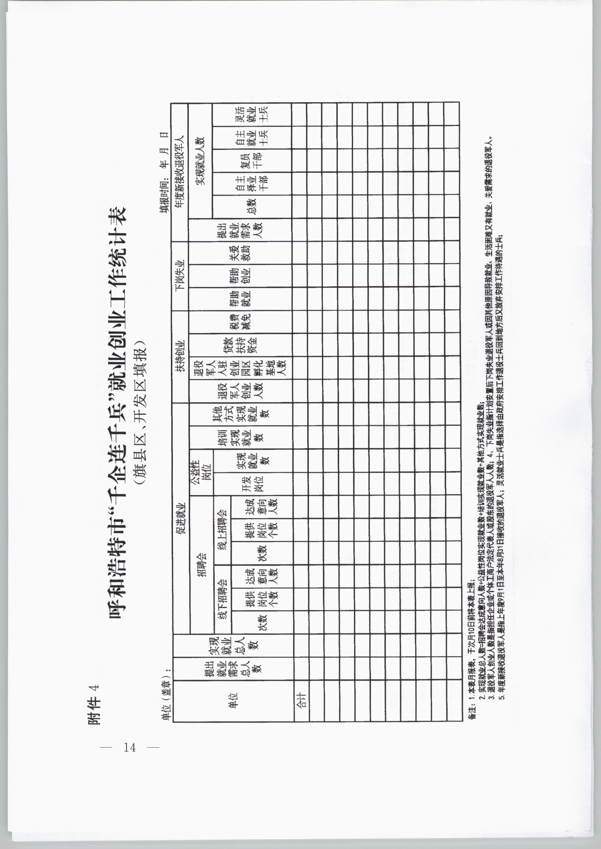 4.呼和浩特市“千企连千兵”就业创业工作统计表