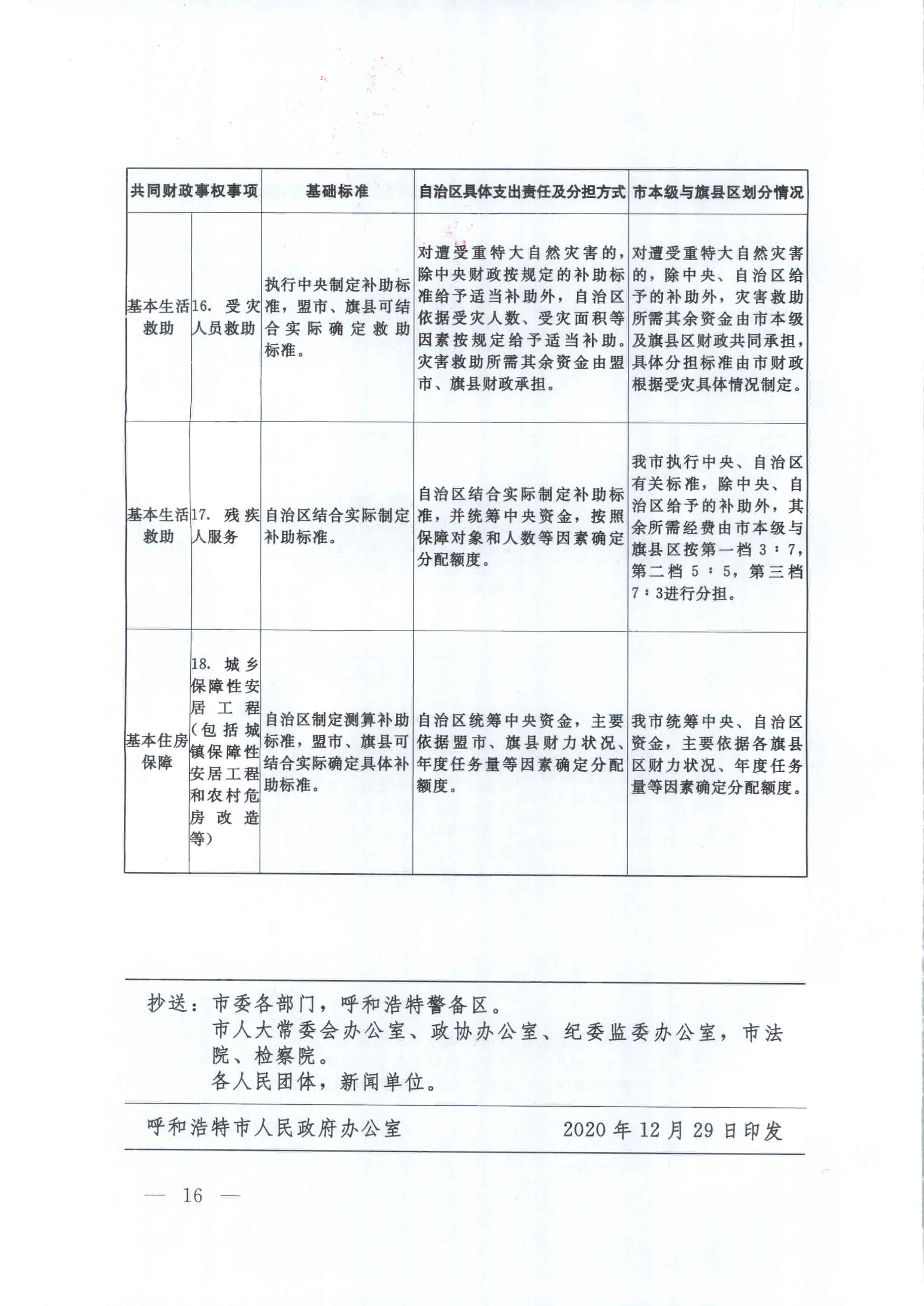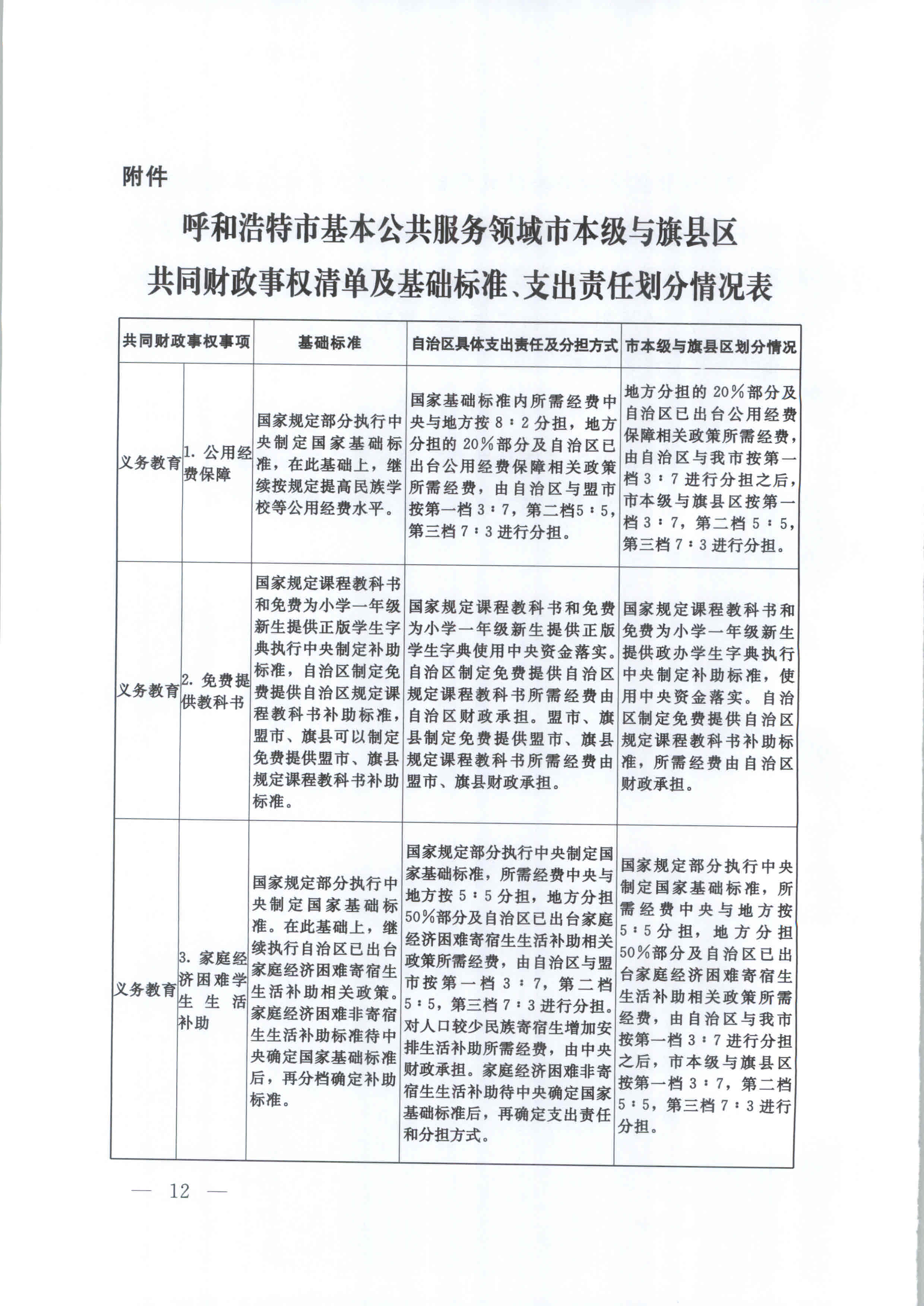附件:呼和浩特市基本公共服务领域市本级与旗县区共同财政事权清单及基础标准、支出责任划分情况表