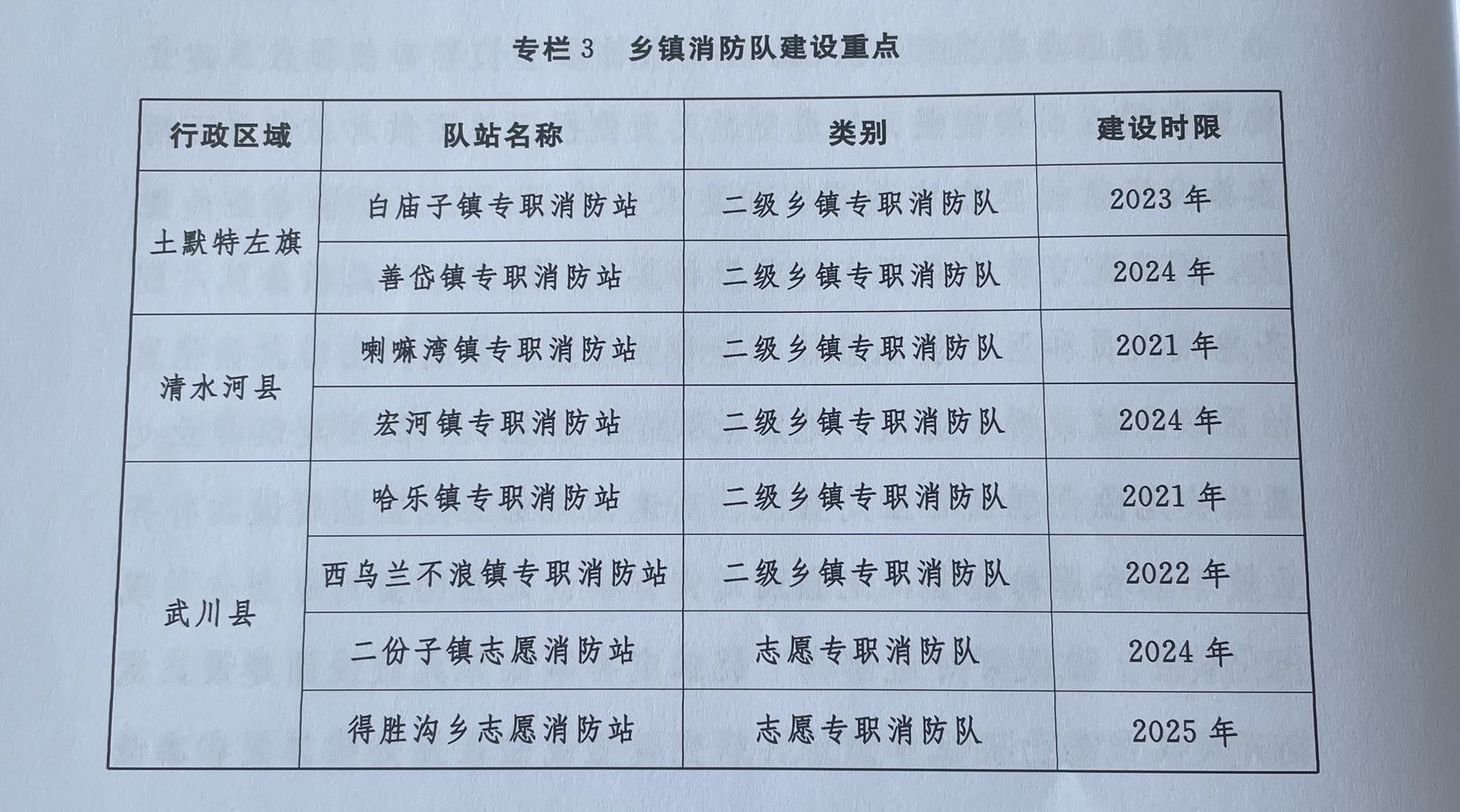 3.呼和浩特市“十四五”期间消防救援事业重大工程专项经费规划表