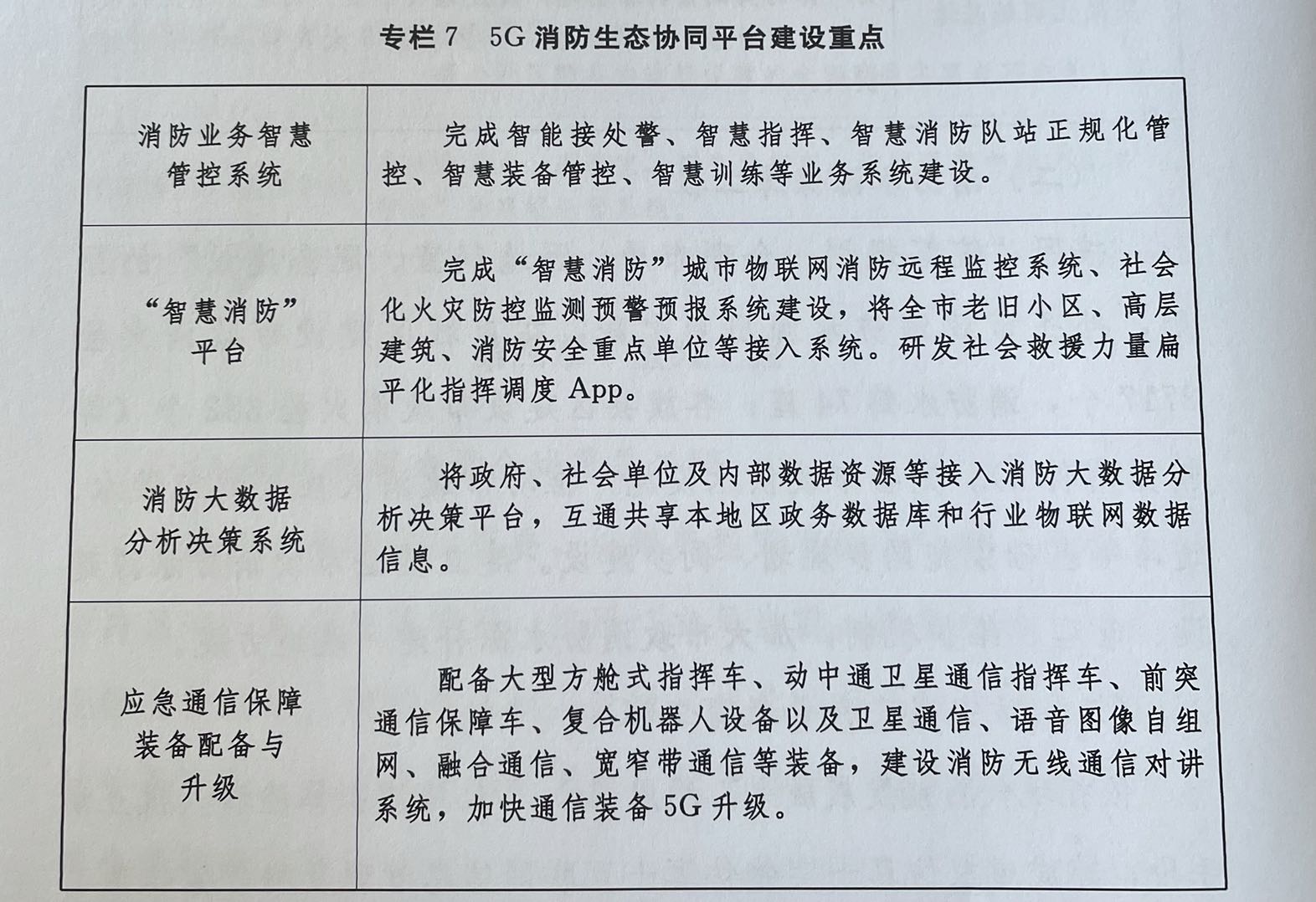 利用先进科技手段,构建5G消防生态协同平台,实现“全域覆盖、全民协同、天地一体、全程智慧、平战衔接、内外畅通”的消防工作新生态、新机制。