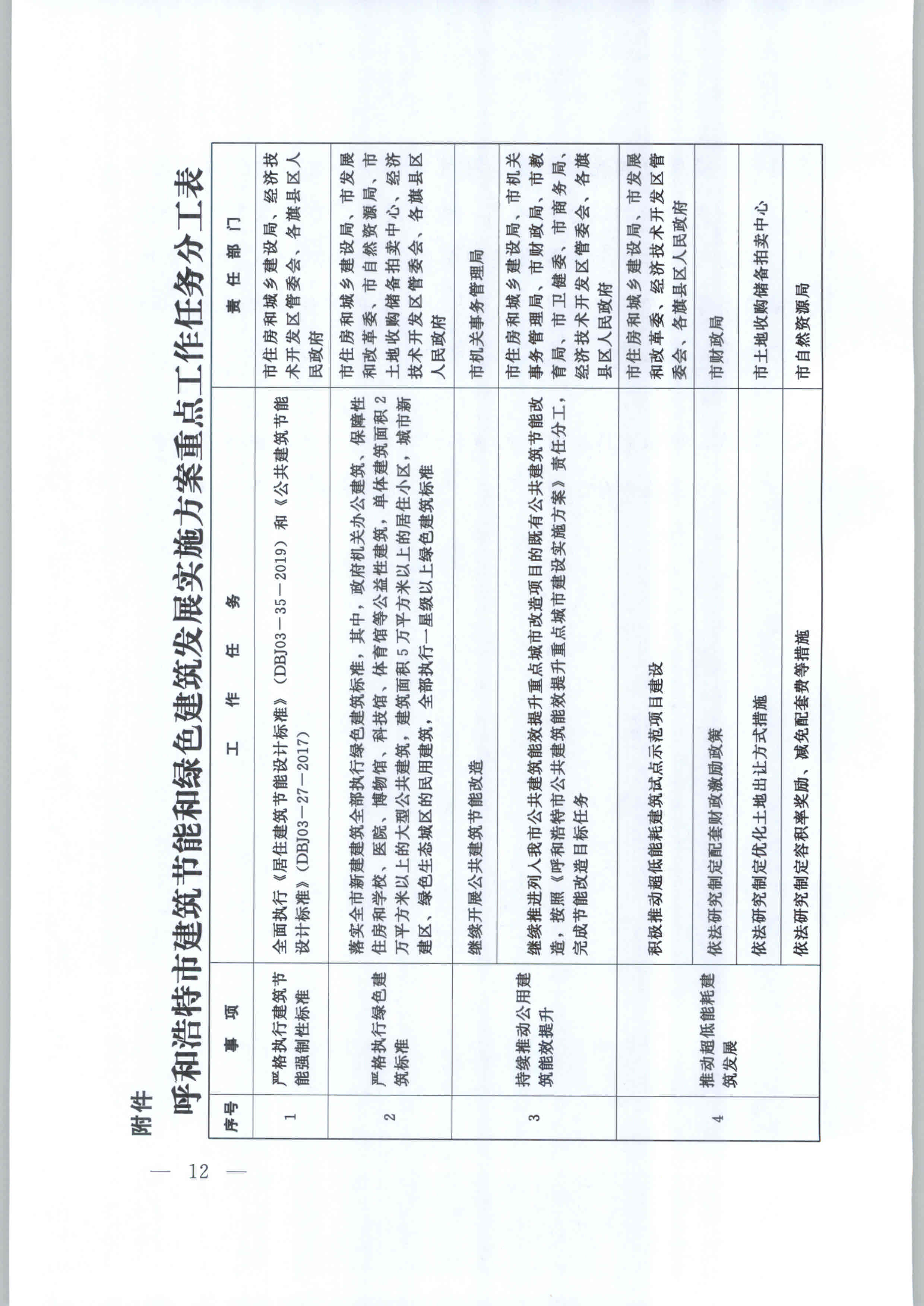 附件:呼和浩特市建筑节能和绿色建筑发展实施方案重点工作任务分工表