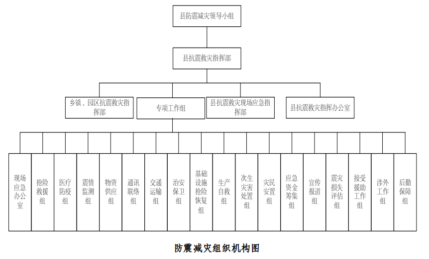3.3 县抗震救灾指挥部下设组织机构及主要职责