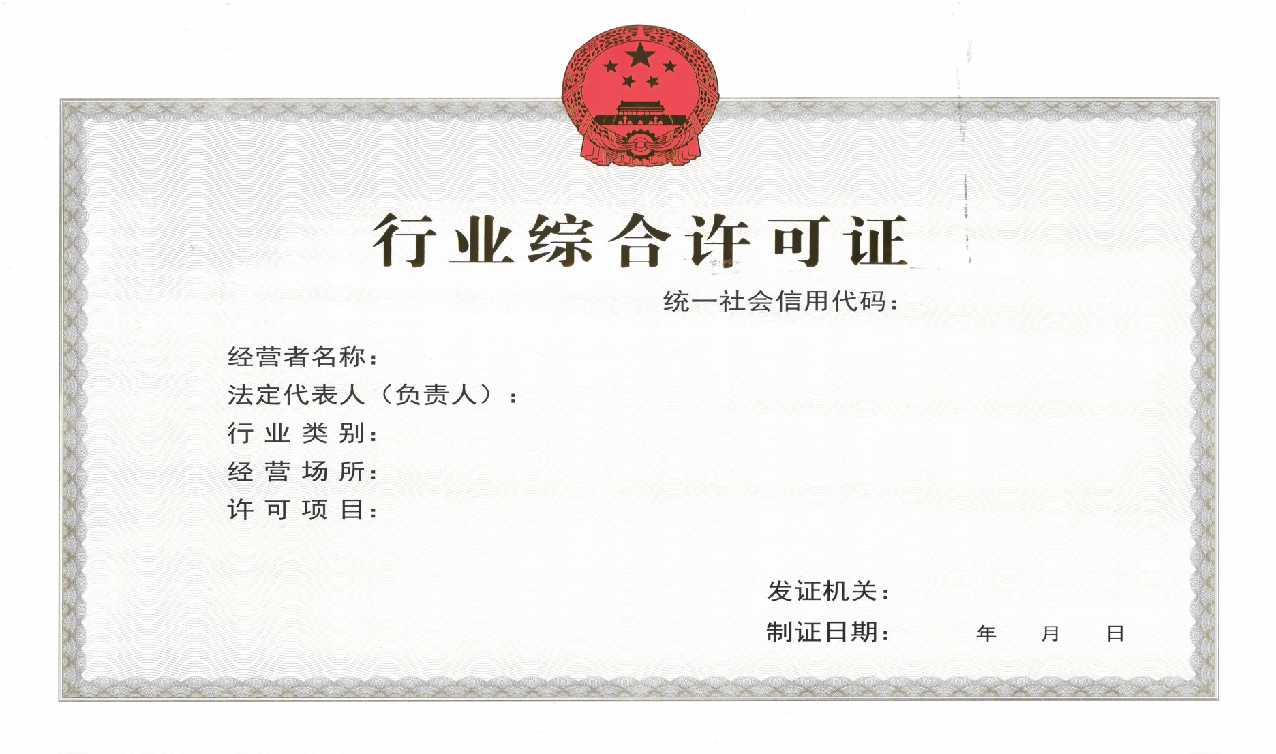 (二)“一证呈现”。按照“共用信息共享应用、个性信息集合公示”的原则,整合申报材料,将同一行业涉及的市场准入执照、许可、备案、批复的多种审批结果归并为一张《行业综合许可证》,统一公示。
