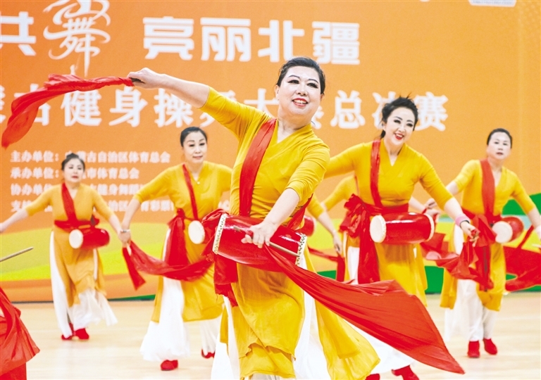 11月29日,参赛队伍正在进行比赛。当日,“全民共舞 亮丽北疆”2025年内蒙古健身操舞大赛总决赛在呼和浩特举行,来自巴彦淖尔、包头、呼和浩特、通辽等盟市基层健身指导站的17支队伍近400名健身操舞爱好者同场竞技。