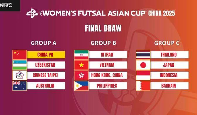 2月6日,2025亚足联女子五人制足球亚洲杯决赛抽签仪式在呼和浩特市举行。进入决赛阶段的12支球队分组落位A、B、C组,将于5月6日至17日举行的女五亚洲杯决赛将掀起亚洲女子五人制足球的新篇章。