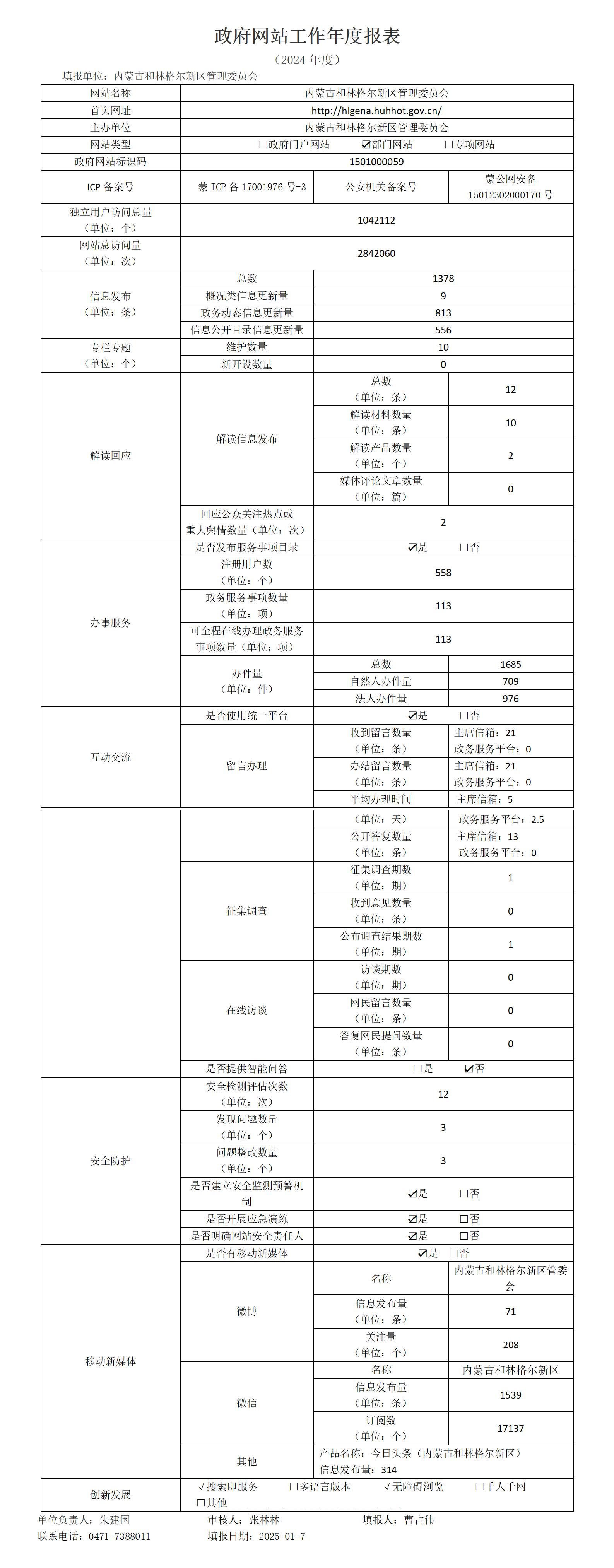 2024年内蒙古和林格尔新区管理委员会政府网站工作年度报表