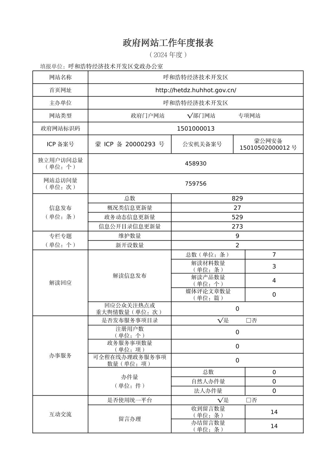 2024年呼和浩特经济技术开发区政府网站工作年度报表